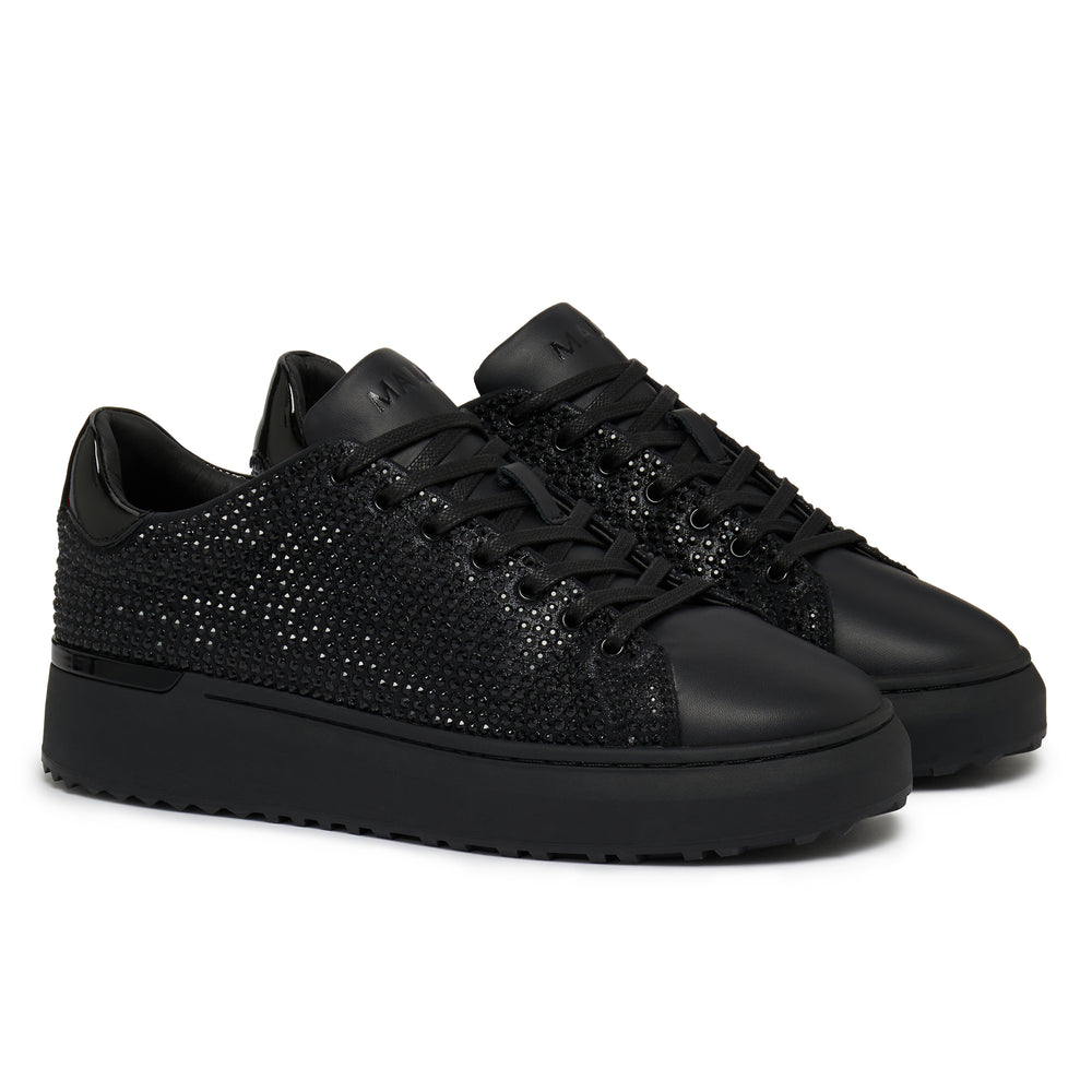 The GRFTR delivers presence as a chunky sneaker, its proportions giving weight to simple looks while maintaining refined lines. For those drawn to sharper polish, the Elia Swarovski reimagines the dress sneaker, bringing together sleek black leather and crystal detailing for elevated impact.Â