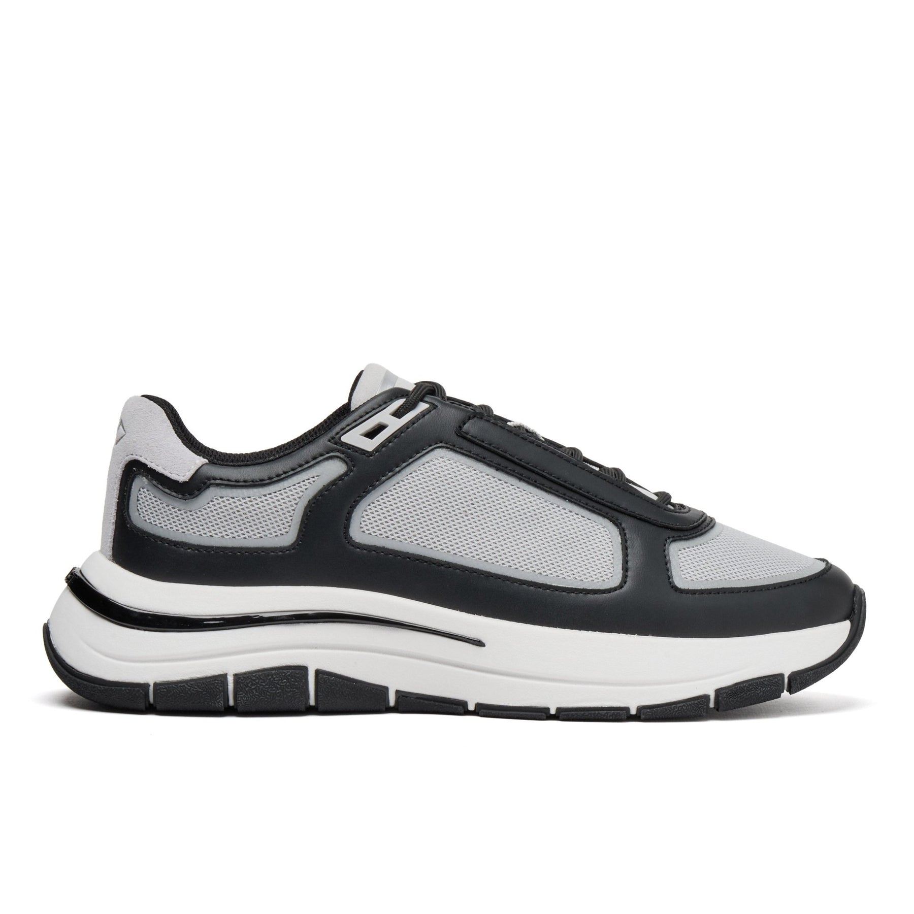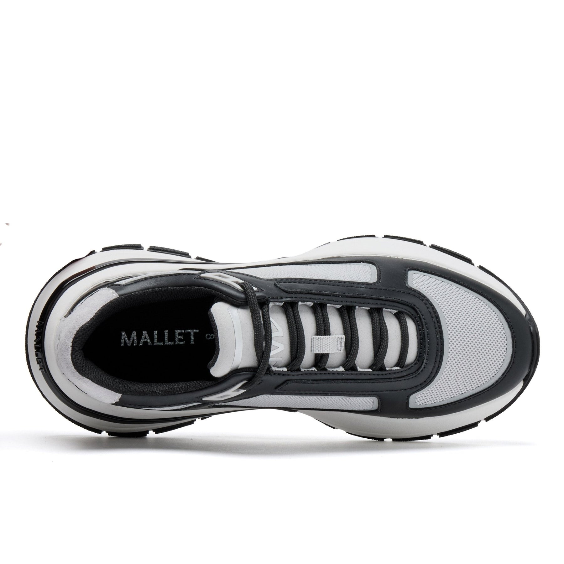 Alton Black Grey reinterprets MALLET’s contemporary sneaker DNA with a sharp monochrome contrast. A clean, technical upper is set on the bold Orb outsole, combining premium leather with chrome mesh and reflective detailing for a modern luxury trainer.