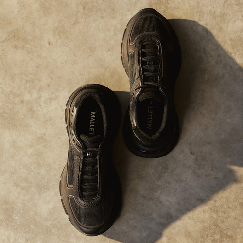 Alton Black Out delivers a refined, all-black interpretation of MALLET’s contemporary sneaker DNA. A clean, technical upper sits on the bold Orb outsole, combining premium leathers with performance-inspired detailing for a modern luxury trainer.