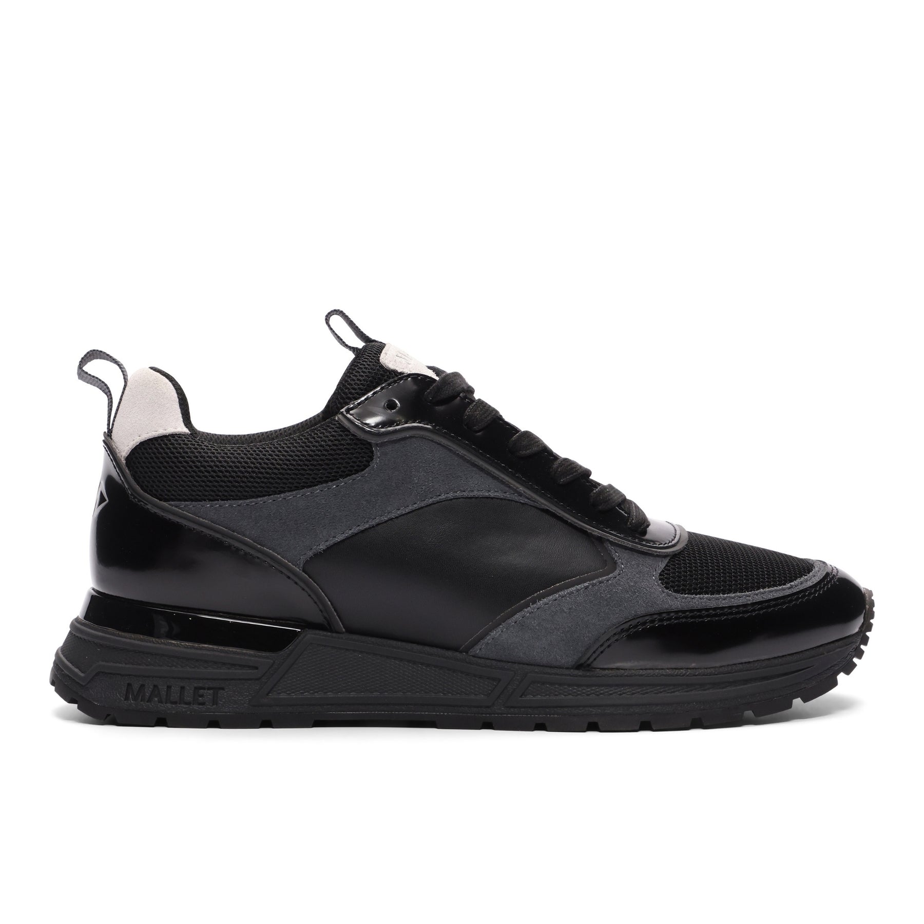 Engineered for style and comfort, the Bethnal Black Ice sneakers from Mallet London redefine modern street-luxury. Designed in London, England, these premium leather sneakers feature a mix of black leather underlays, hi-shine leather and grey suede overlays, paired with a breathable mesh toe box and reflective details for a subtle technical edge.