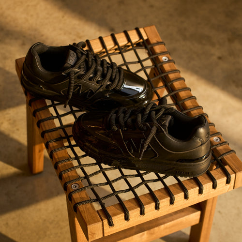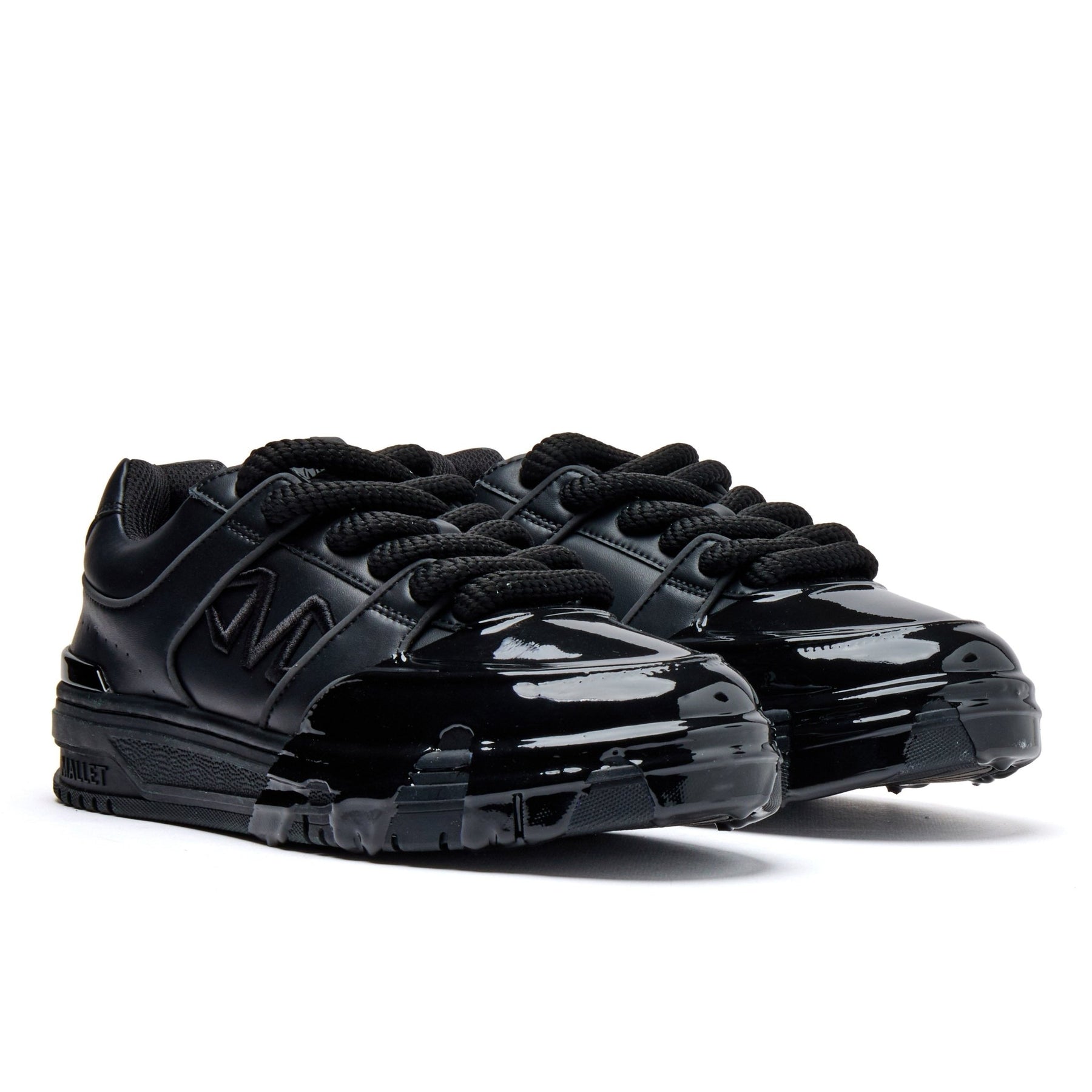 Clayton Triple Black Splat delivers a street and skate-inspired trainer with a refined luxury finish. Crafted from premium black leather, the silhouette is elevated with reflective detailing and a distinctive splat dip toe for a bold, contemporary edge.