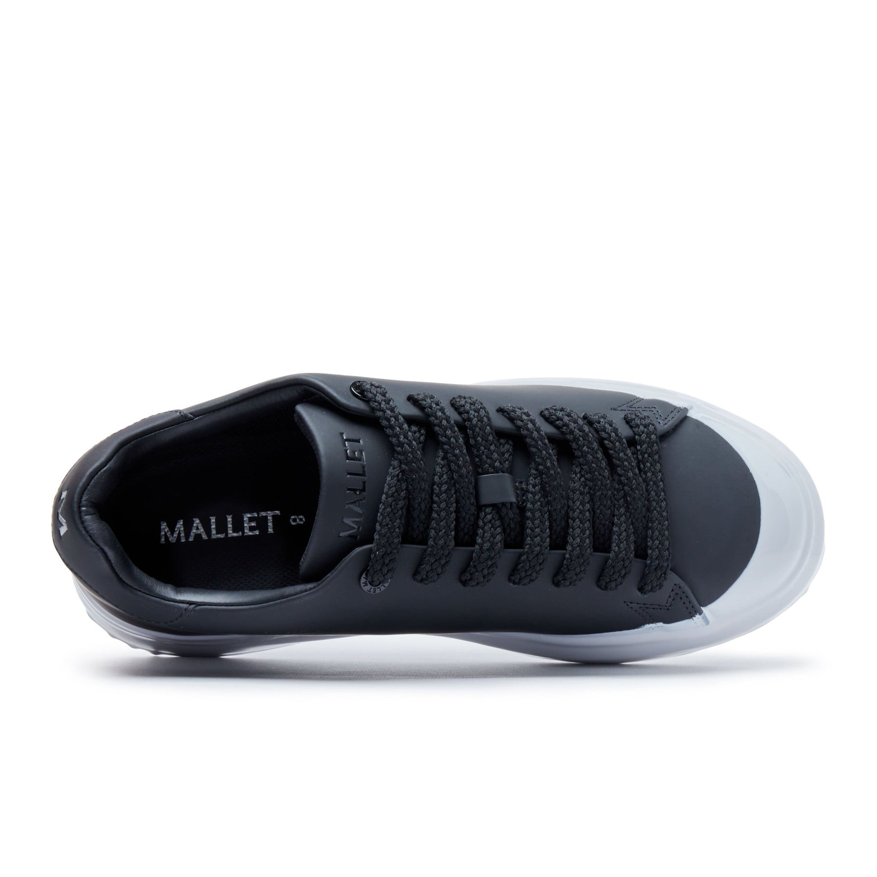 Sleek, sustainable, and street-ready, the GRFTR Lite Black Ice Dip sneakers from MALLET combine bold design with eco-conscious features. Designed in London, England, these premium sneakers feature full black matt leather, a hand-dipped pale grey sole, and OrthoLite® HybridPlus-Recycled™ footbed for all-day comfort.