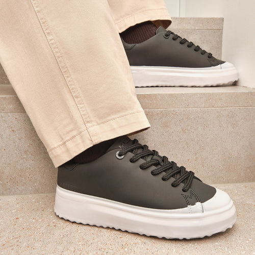 Sleek, sustainable, and street-ready, the GRFTR Lite Black Ice Dip sneakers from MALLET combine bold design with eco-conscious features. Designed in London, England, these premium sneakers feature full black matt leather, a hand-dipped pale grey sole, and OrthoLite® HybridPlus-Recycled™ footbed for all-day comfort.