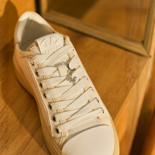 Women’s white canvas low-top sneakers with almond dipped chunky sole