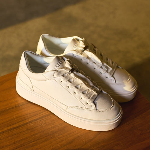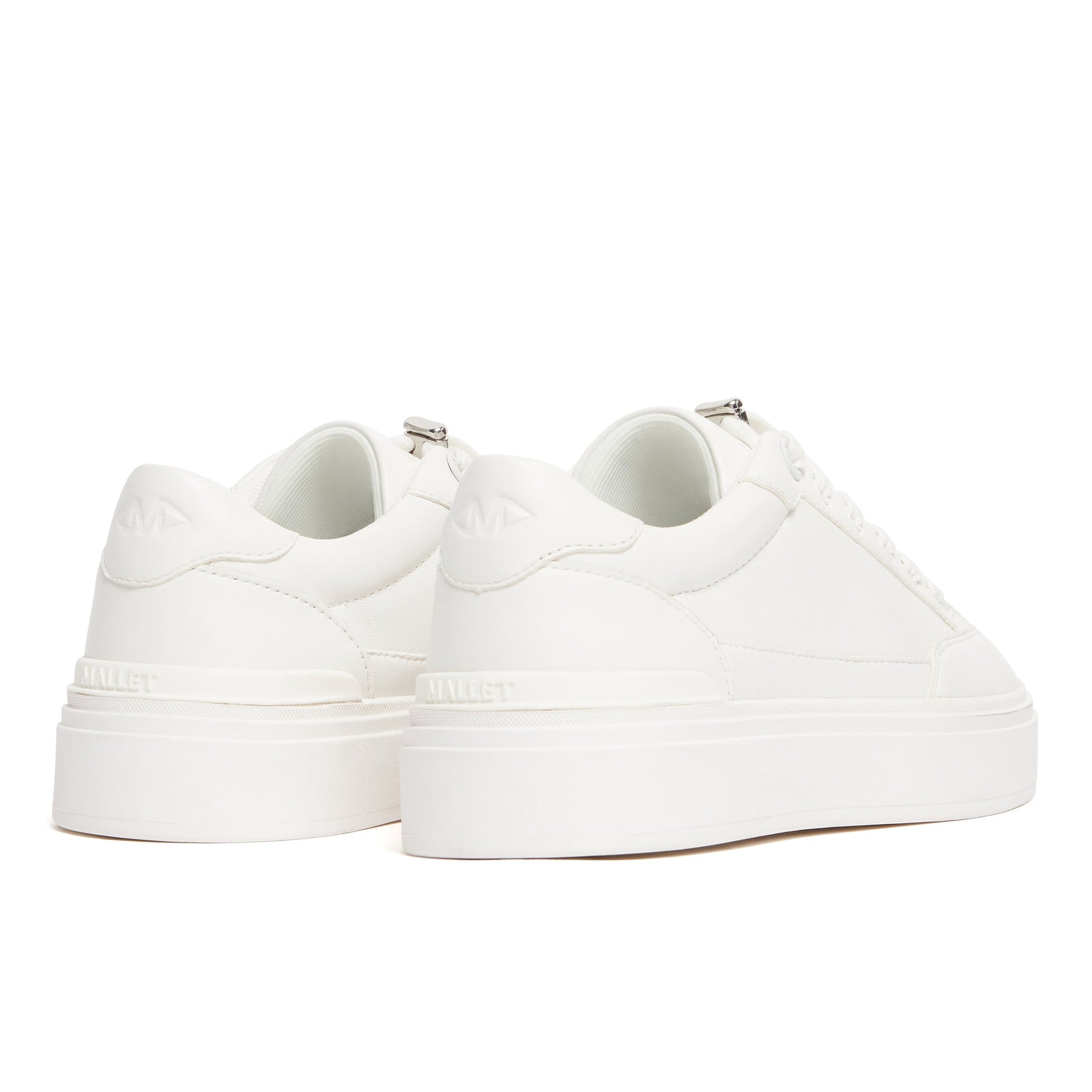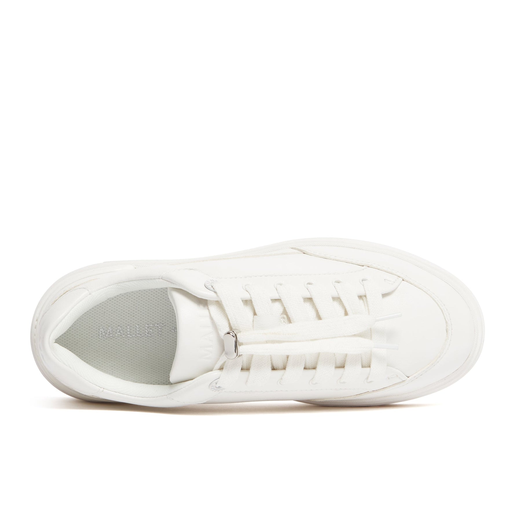 Lansbury White Leather Womens delivers a refined, minimalist cupsole trainer crafted from ultra-soft lambskin leather. Subtle branding and clean tonal detailing define this elevated everyday silhouette, finished with a MALLET sole unit designed in London.