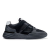 Men’s black mesh, suede and leather low-top sneakers with white tabs